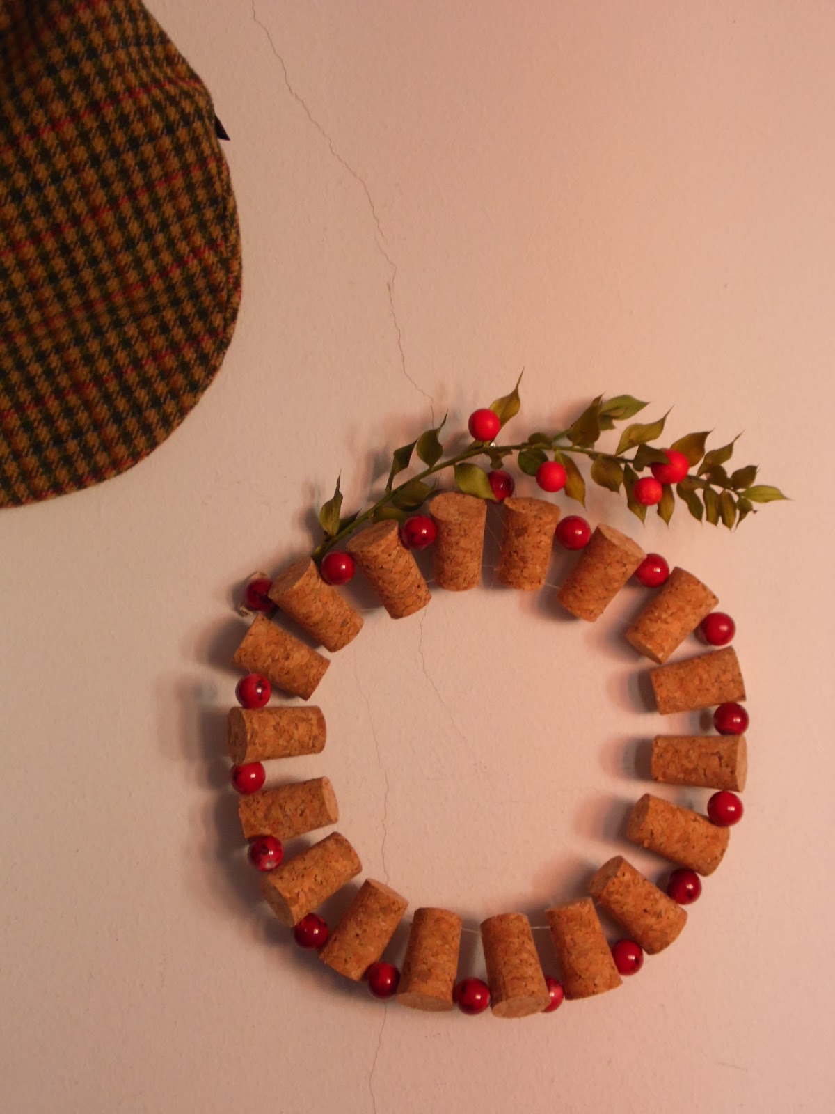 Bons são os momentos em que fugimos à regra e ao esperado. Por isso, nada melhor para o momento do que fazer um pic nic no banco das traseiras, ao sol mas bem agasalhados, à hora de almoço da carracinha e depois, antes de ir para a escola, irmos comprar rolhas para um projecto maluco que a mãe tinha na cabeça. Não é que a execução tivesse saído perfeita, que nestas coisas nunca fui perfeccionista, mas o que guardo é a recordação e o sentimento de frescura, aventura e realização, que fica de furar umas quantas rolhas de cortiça com a agulha e fio de coco para tentar fazer uma coroa. Com um raminho de bagas apanhadas na Mata, até parece que já começa a cheirar a Natal por aqui...